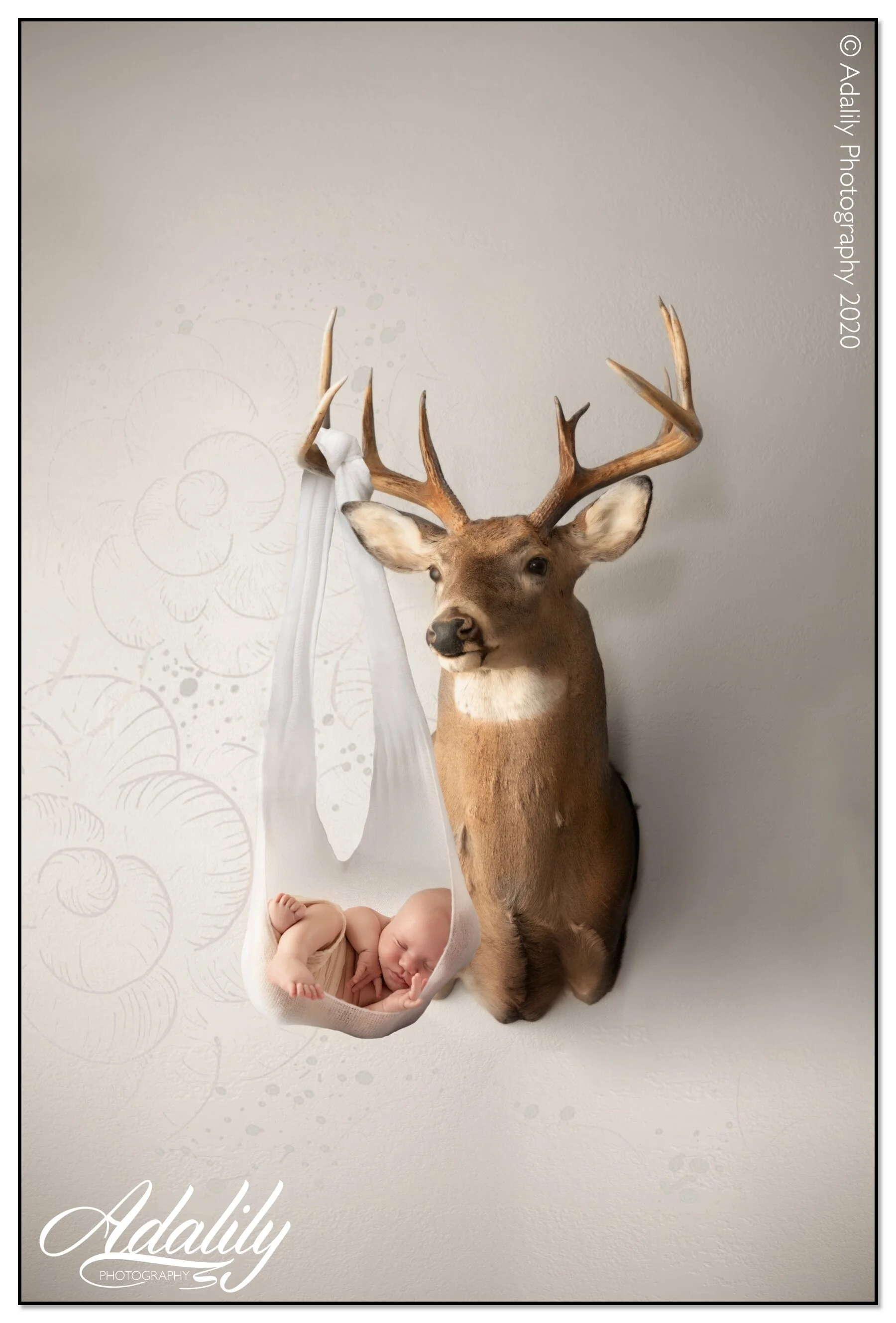 We had to try 1 special photo that Mom wanted for newborn photos. Since we couldn’t do them we decided to try it for 3 months! It turned out so fun!! (Just to clarify, baby was NOT actually hanging from the deer!) ;)